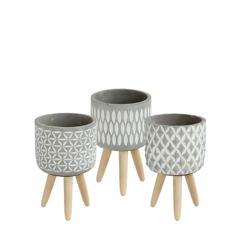 Blumentöpfe aus Zement mit Holzbeinen
