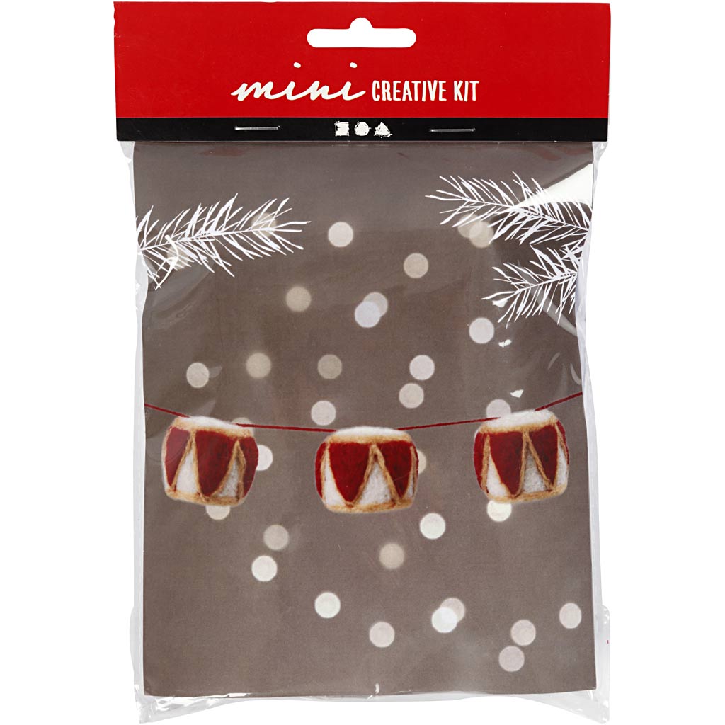 Starten Sie kreativ in die Winterzeit und sorgen für gemütliche Weihnachtsstimmung mit unserem Nadelfilz-Set. Es enthält alles, was Sie für die Anfertigung einer Girlande mit drei Filztrommeln in traditionellen Weihnachtsfarben benötigen. Die mitgelieferten Anweisungen helfen Ihnen beim Einstieg
