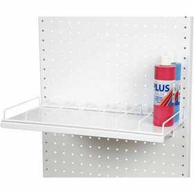 Drahthalterung aus weißlackiertem Metall. Geeignet für z.B. größere Flaschen, Spulen, Band, Draht u.a. Passend für Regalboden Art. 93212