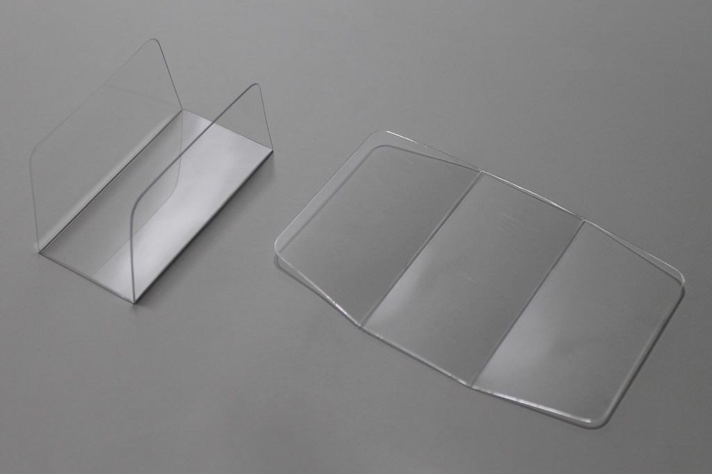 Die transparenten Einsätze sind aus hochwertigem, antistatischem 300-Mikron-Material hergestellt und von der FDA (Lebensmittelbehörde) für den direkten Kontakt mit Lebensmitteln zugelassen. Außerdem sind die Einsätze frei von Säuren und Lignin, also für Archivierungszwecke geeignet.