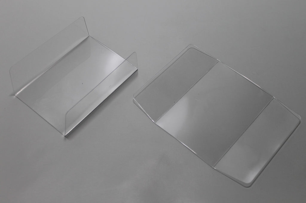 Die transparenten Einsätze sind aus hochwertigem, antistatischem 300-Mikron-Material hergestellt und von der FDA (Lebensmittelbehörde) für den direkten Kontakt mit Lebensmitteln zugelassen. Außerdem sind die Einsätze frei von Säuren und Lignin, also für Archivierungszwecke geeignet.