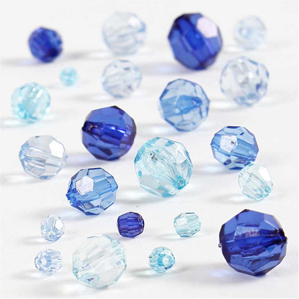 Facettenperlen, Größe 4-12 mm, Lochgröße 1-2,5 mm, ca. 170 Stk, Harmonie in Blau, 45 g/ 1 Pck [HOB-618821]