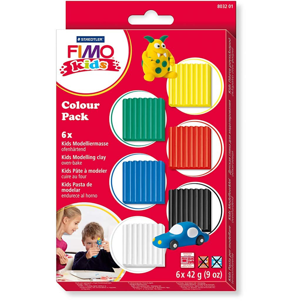 Hautfreundlicher, ofenhärtender FIMO®-Ton, der besonders weich und gut modellierbar ist. Die Farben sind mischbar, die Verpackung wieder verschließbar. Die fertigen Figuren werden 30 Minuten lang bei 110°C im normalen Backofen gebrannt.