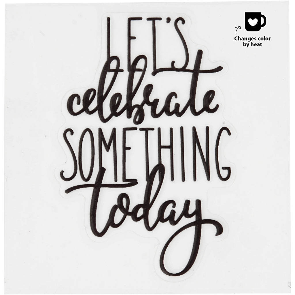 Zum Verzieren von Porzellan, Glas, Metall etc. Transparenten Schutzfilm entfernen und das selbstklebende Motiv auf das Objekt reiben. Durch Hitze - z. B. heißes Getränk - ändert sich die Stickerfarbe von Schwarz zu Rot - nicht spülmaschinengeeignet