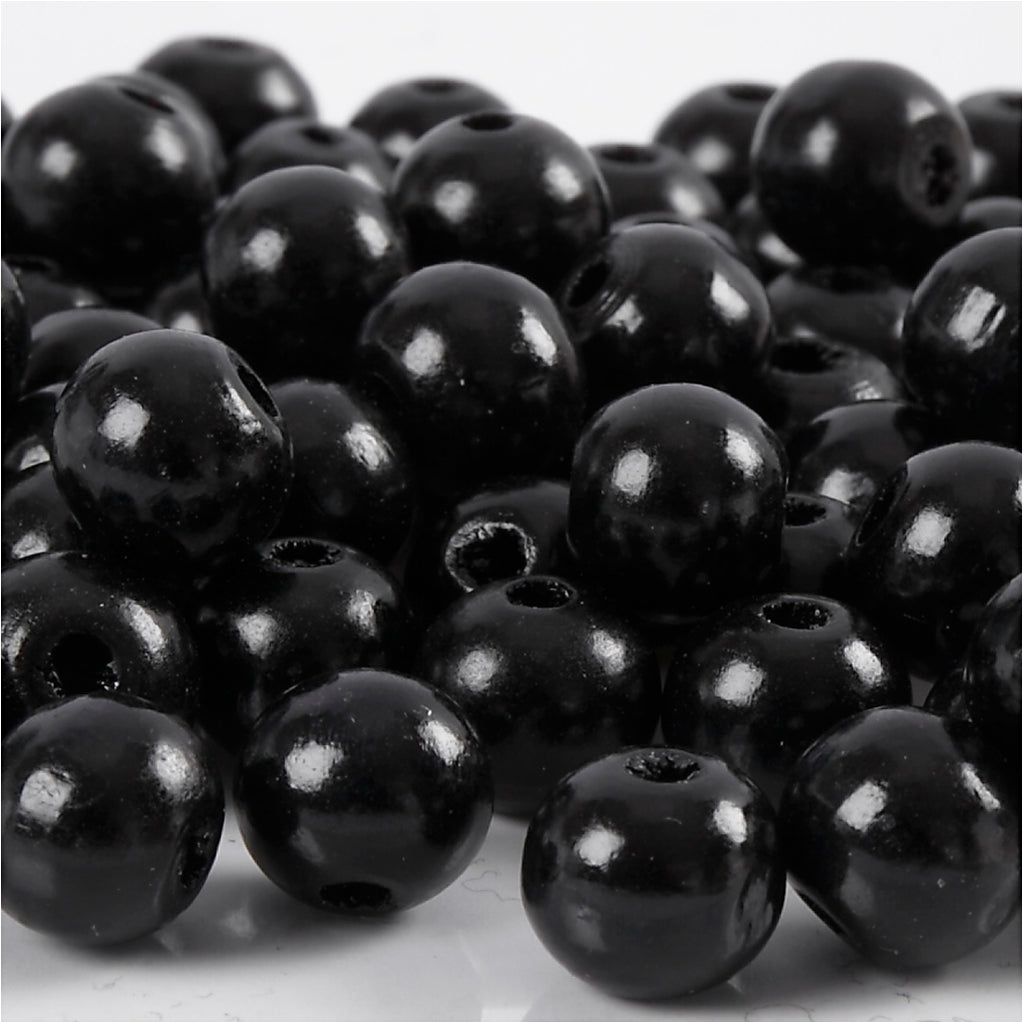 Holzperlen, D 10 mm, Lochgröße 3 mm, ca. 70 Stk, Schwarz, 20 g/ 1 Pck [HOB-570595]