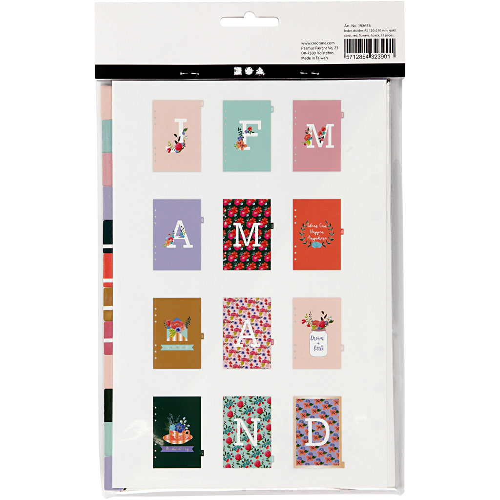 Dekorative Einlagen aus bedrucktem Karton - mit 6er-Lochung und -Einteilung in 12 Monate - für Reisetage- und Kreativbücher passend für die Kalenderhüllen Art. 192648-192651