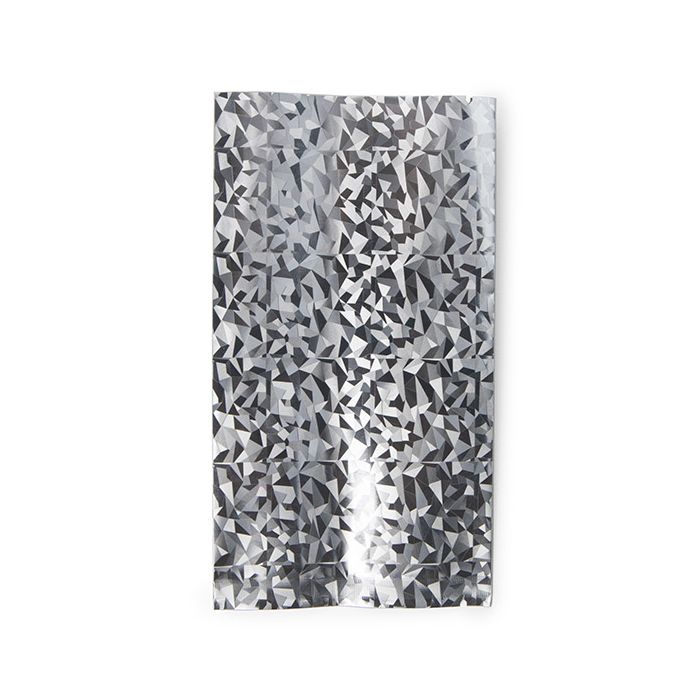 Flache Heißsiegelbeutel sind eine großartige Verpackungslösung für alle Arten von Artikeln. Diese Holografie-Beutel sind nicht anders, aber super süß und einzigartig. SVP35HHI ist 7,6 x 14 cm groß und besteht aus lebensmittelechtem 65-Micron-VMPET-Material für hohen Barriereschutz. Diese Beutel eignen sich hervorragend zum Verpacken von Dingen wie Kaffeesatz, Backmischungen, Schokolade, Badesalz, Wachsschmelze und Sammelkarten. Die undurchsichtigen silbernen Beutel haben ein geometrisches "Eiscreme"-Muster und sind ideal für Partygeschenke, Geschenke, Überraschungspakete und mehr. Die Beutel haben ein offenes Ende zum einfachen Befüllen und können mit Hitze versiegelt werden. Eine Boden- und eine Rückennaht sorgen für zusätzliche Festigkeit. An beiden Enden befinden sich Aufreißkerben zum einfachen Öffnen durch den Endverbraucher.