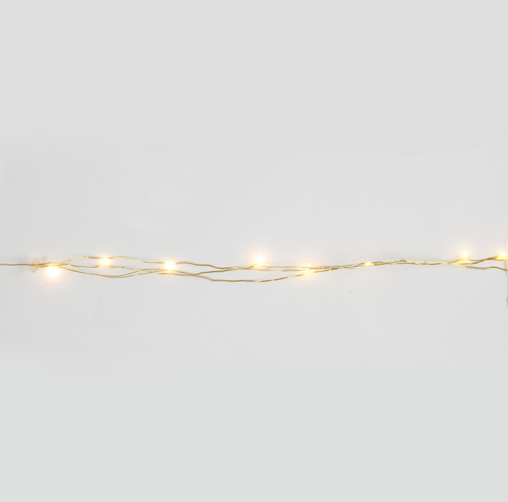 Batteriebetriebene Lichterkette mit 20 LED-Lämpchen, bestehend aus beschichtetem Kupferdraht, in Abständen beklebt mit kleinen Leuchtdioden, sowie einem Batterie-Gehäuse. Benötigt werden 2 x AA-Batterien (Artikel 14000 - nicht im Lieferumfang enthalten). Nur zum Gebrauch in Innenräumen