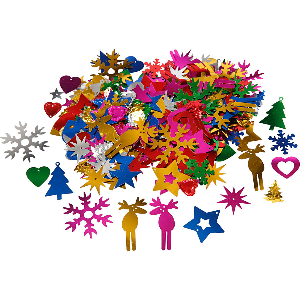 Vielfarbige Pailletten im Weihnachtsthema