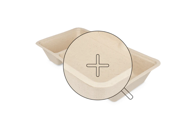 Diese Schachteln sind komplett plastikfrei und daher auch umweltfreundlich. Mit der Größe von 8,5x3x16 cm eignen sich diese Tabletts für kleinere Portionen Pommes oder Snacks. Der Behälter verfügt über ein separates Soßenfach, sodass Sie die Soße versenken können.