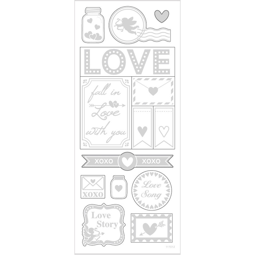 Selbstklebende Sticker aus Silberfolie auf transparentem Plastikfilm