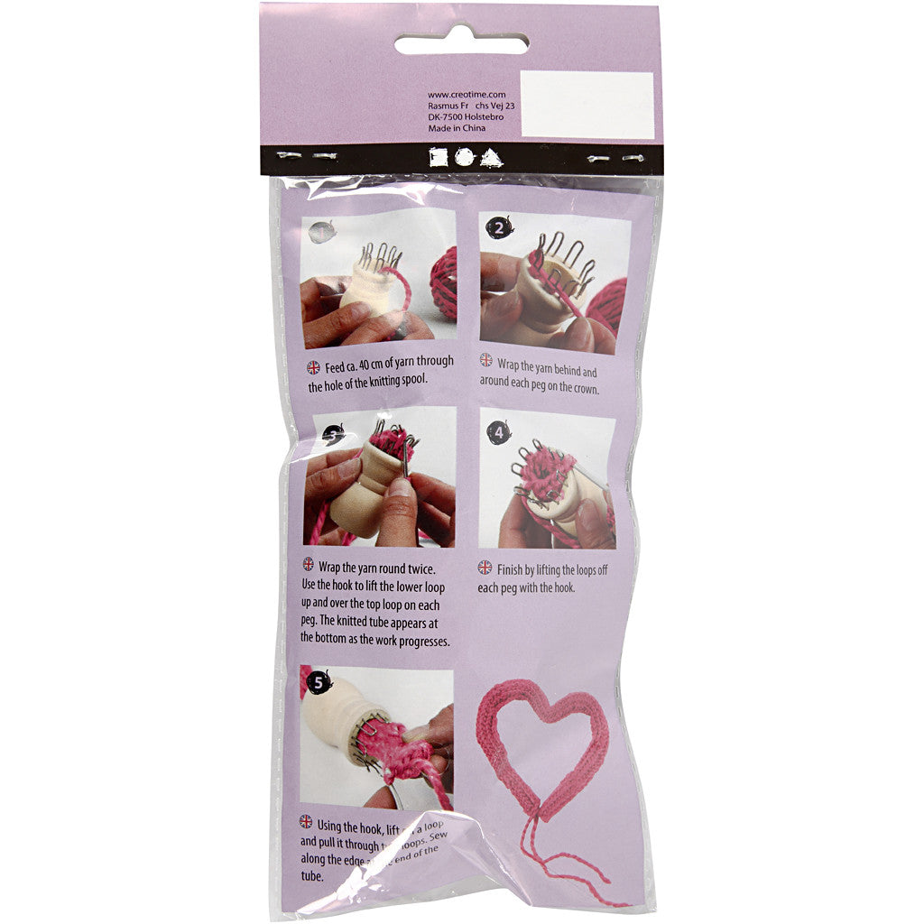Strickliesel aus unbehandeltem Holz mit Metallösen an der Spitze